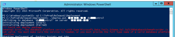 > DACPAC – Could not deploy package, the database platform service with type Sql130DatabaseSchemaProvider is not valid > dacpac version issue