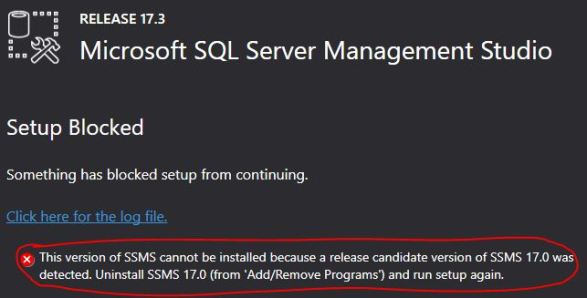 > SSMS Installation Error – This version of SSMS cannot be installed because a xyz version of SSMS 17.0 was detected > SSMS Install Error