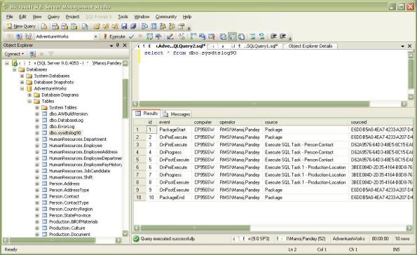Here we will see how can we use the SQL Server log provider (#3 above), which writes log entries to the sysssislog table in a SQL Server database.