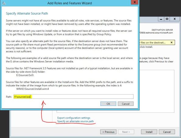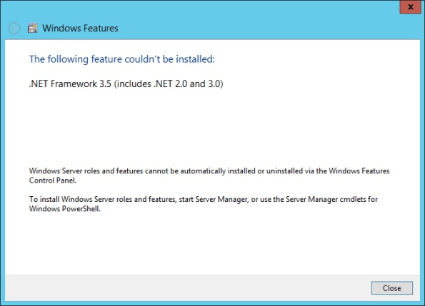 Error – The following feature couldn’t be installed – .NET Framework 3.5
