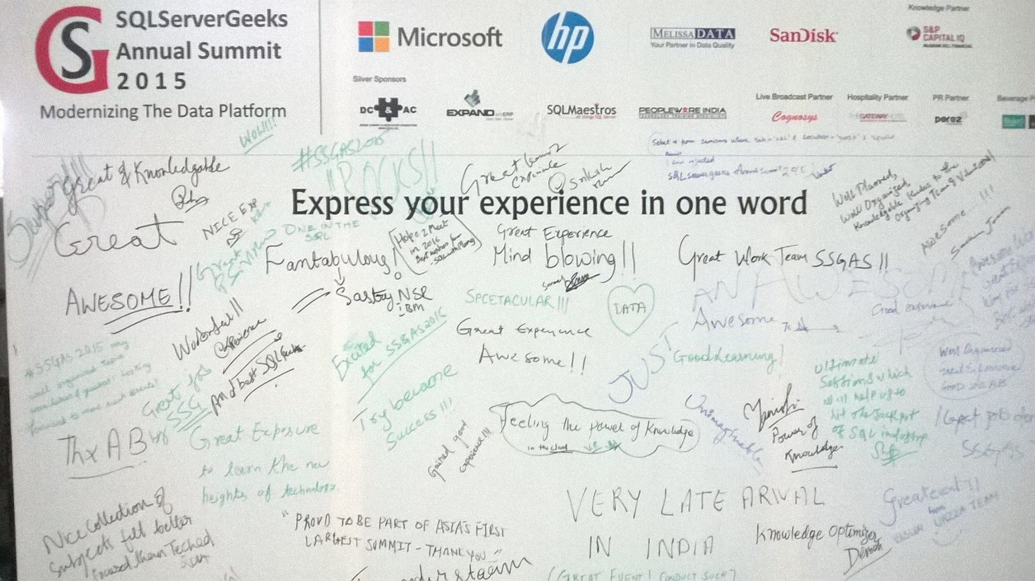 This year I got an opportunity to attend the SSGAS 2015 i.e. SQL Server Geeks – Annual Summit, the first time ever, large scale professional SQL Conference in India, Bangalore (KA), India, on Aug 27-29, 2015.