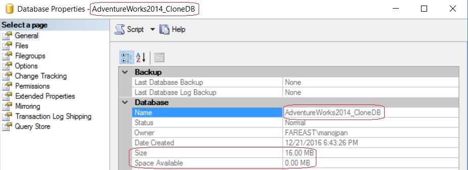 –> Now let’s create a Clone Database on AdvantureWorks database: