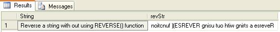 SET @StringToReverse = 'Reverse a string with out using REVERSE() function'
