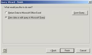 … select “View data or edit query in Microsoft Query” and click on Finish button.