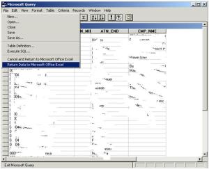 When you are done with the query, go to the File menu and select “Return Data to Microsoft Office Excel”.