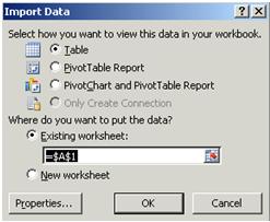 12. You will be redirected back to Excel with this new small window “Import Data”.