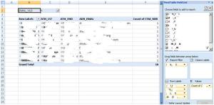 I’ve chosen 4 columns from the table (as shown inside the Row Labels box) and the 5th column is the derived column, count of Customers/Records (as shown inside the Value box).