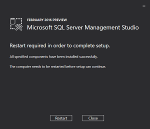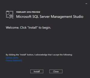 In my [previous blog] post of SQL Server 2016 RC0 availability, I mentioned regarding SQL Server Management Studio (SSMS) that it will no longer be installed from the main feature tree of SQL Server engine setup.
