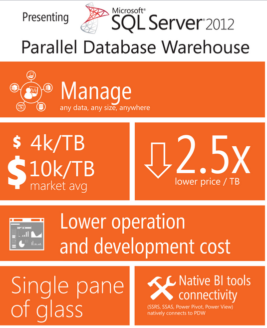 5. SQL Server 2012 PDW: (Parallel Data Warehouse) will be using Polybase to interact between PDW and Hadoop clusters.