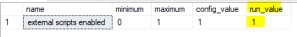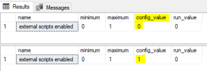 sp_configure 'external scripts enabled' GO sp_configure 'external scripts enabled', 1; GO RECONFIGURE; GO sp_configure 'external scripts enabled' GO