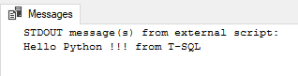 @script = N'print(''Hello Python !!! from T-SQL'')'